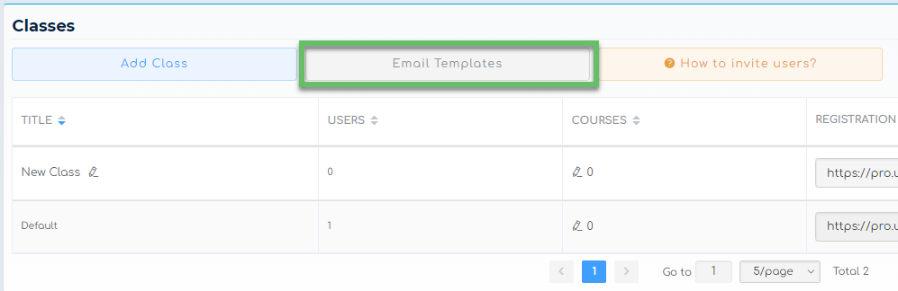 To locate this template, go to Group Management, and view the Classes section at the top of the page. Select the gray ‘Email Templates’ button at the top of the page to view the available templates.