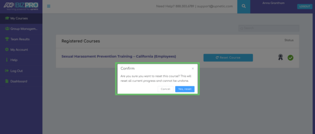 5. Next, employees will need to confirm the course reset.