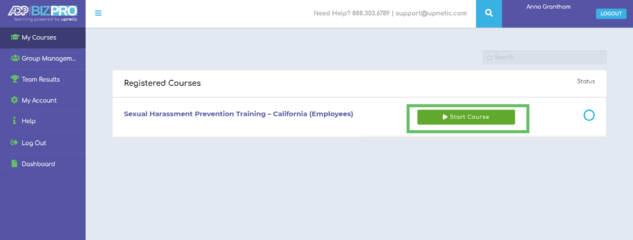 1. Employees who completed a course previously and need to retake it can log in here on pro.upnetic.com.