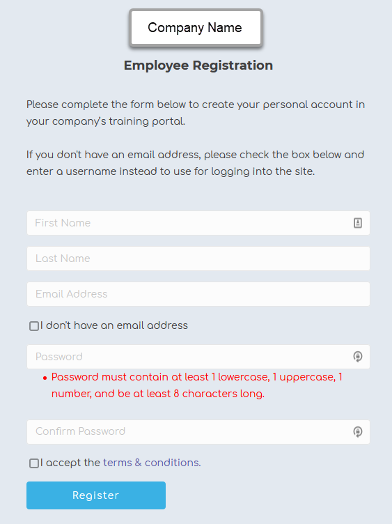 2. After following the link, you will land on the registration page. You will need to complete the form to create an account.