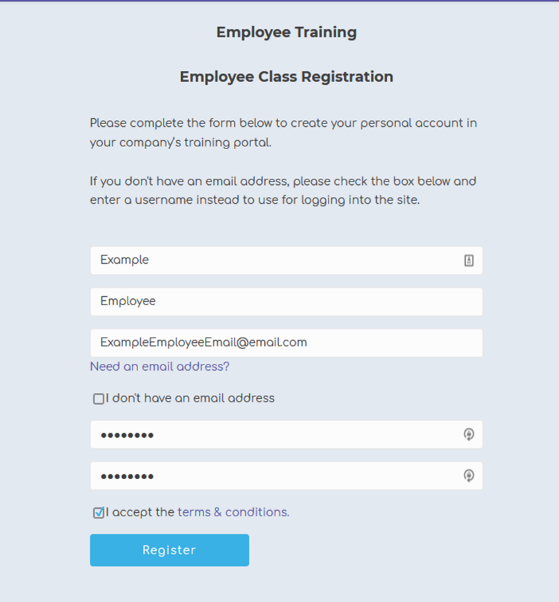 1. Check for a Training registration email/text from your employer, and follow the link!