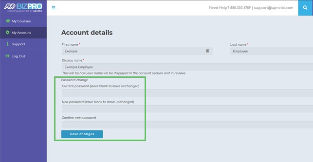 After logging in, you can update your name, email, and password in the “My Account” tab: