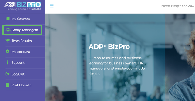 1. Classrooms are used to group employees by training requirements, preferred learning language, etc. To add a new classroom, go to the Group Management tab located in the purple menu on the left-hand side: