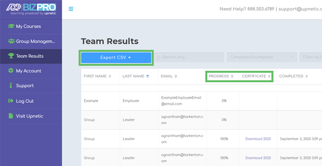 You can track employee progress under the “Progress” column, and download completion certificates* for each employee by clicking “Download (YEAR)” under the certificates column.