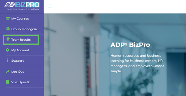 To access employee training progress & completion certificates, click on the Team Results tab: